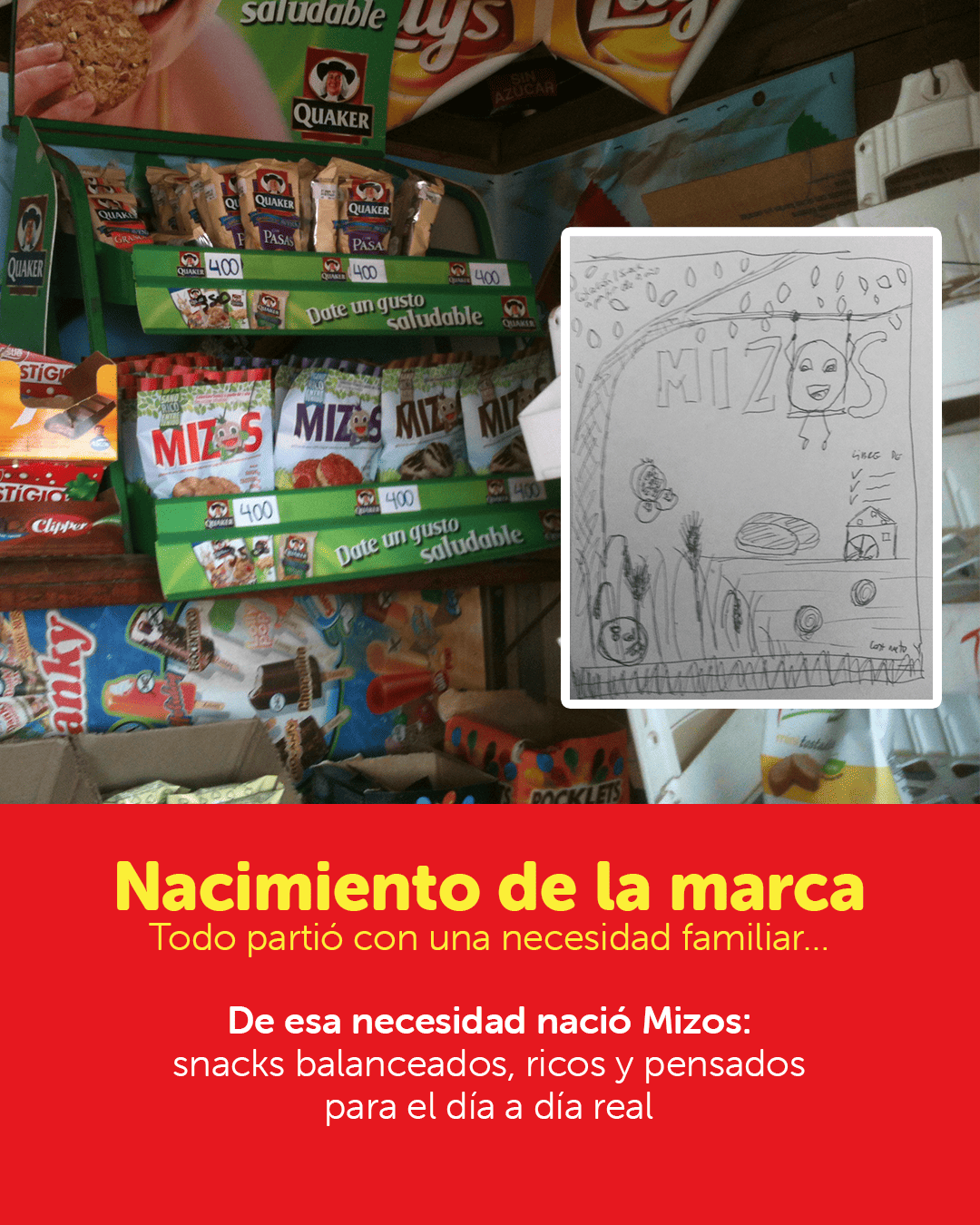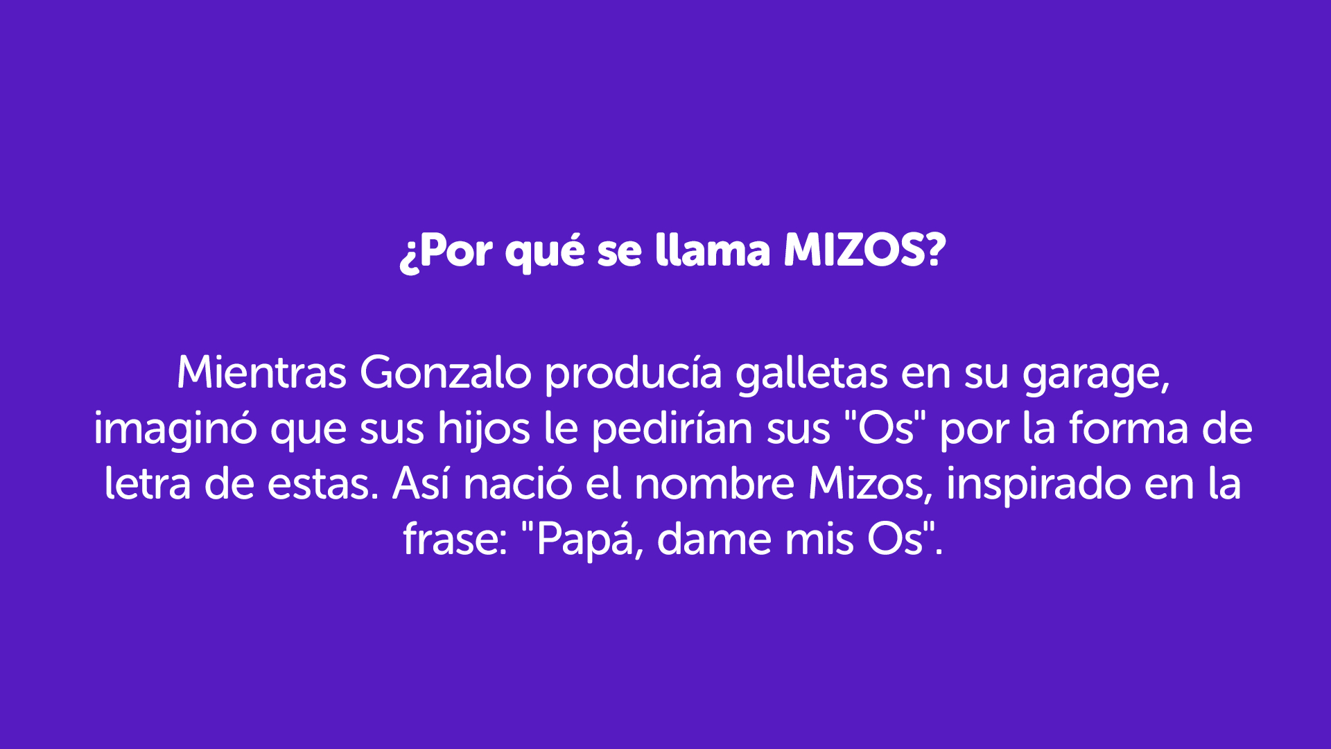 Todo se remonta a inicios del 2012 cuando uno de los socios, habiendo sido padre por primera vez y asombrado, tanto por la escasa oferta de productos saludables para niños en el mercado local, como por los altos índices de obesidad infantil en la realidad chilena, decide crear MIZOS. Nació así la idea de crear un snack para niños que fuese realmente saludable y nutritivo, y que a la vez, fuese rico.